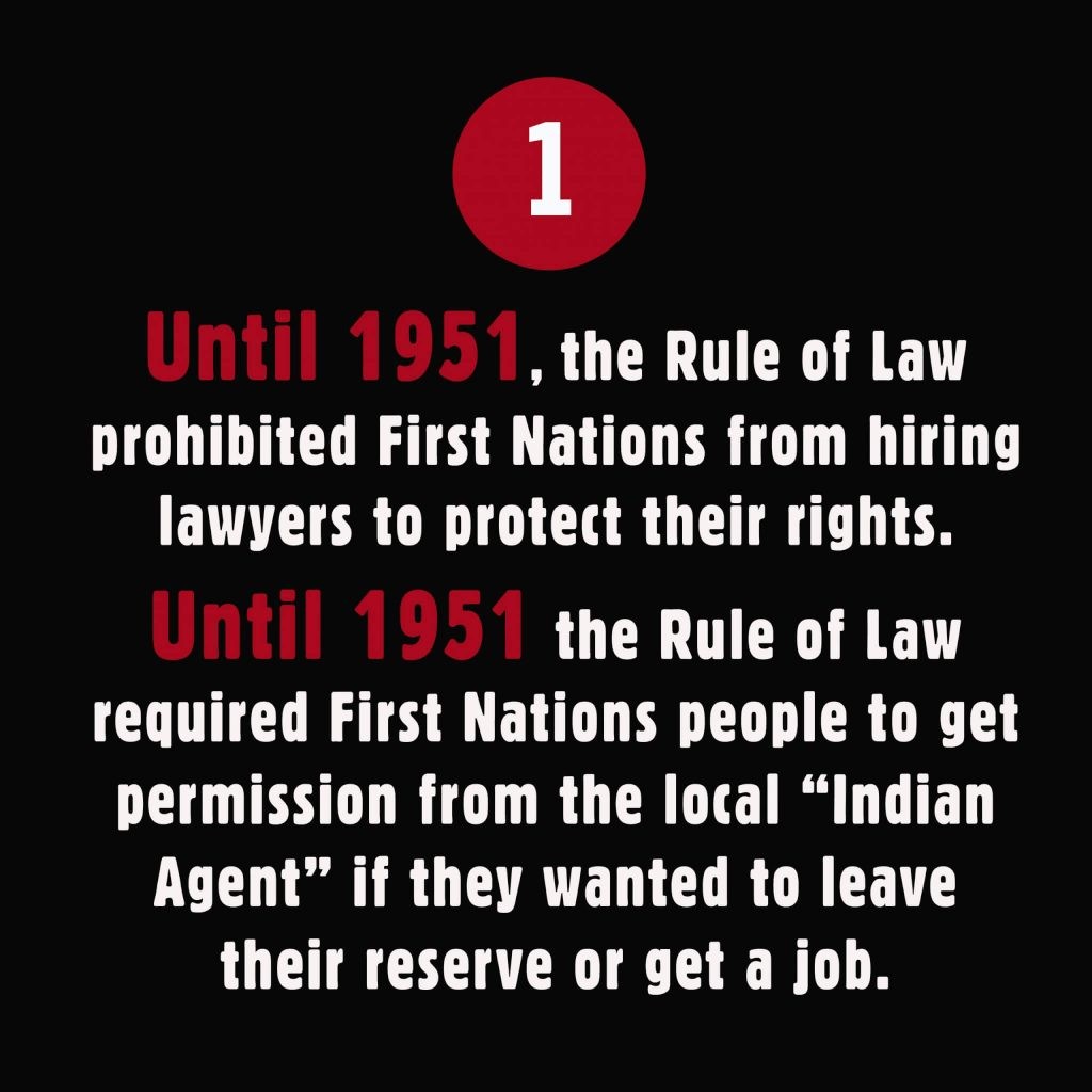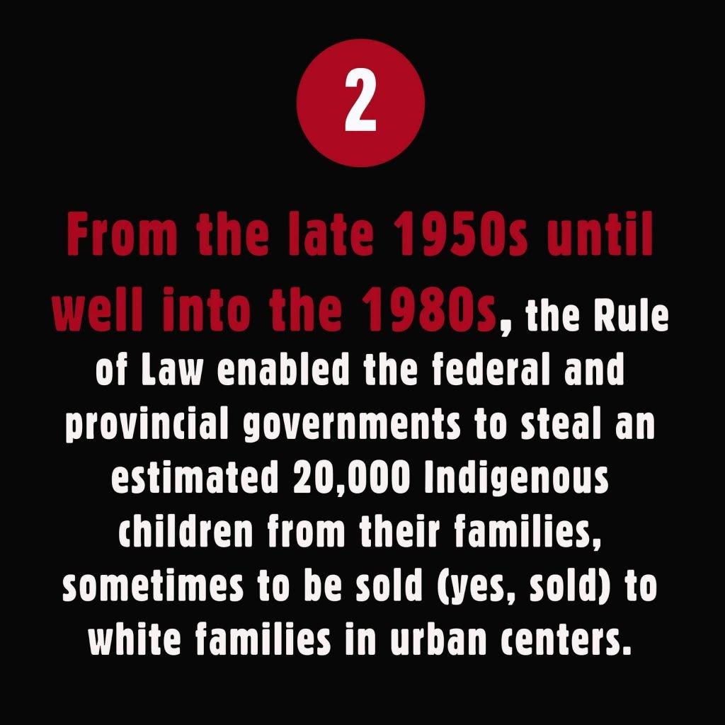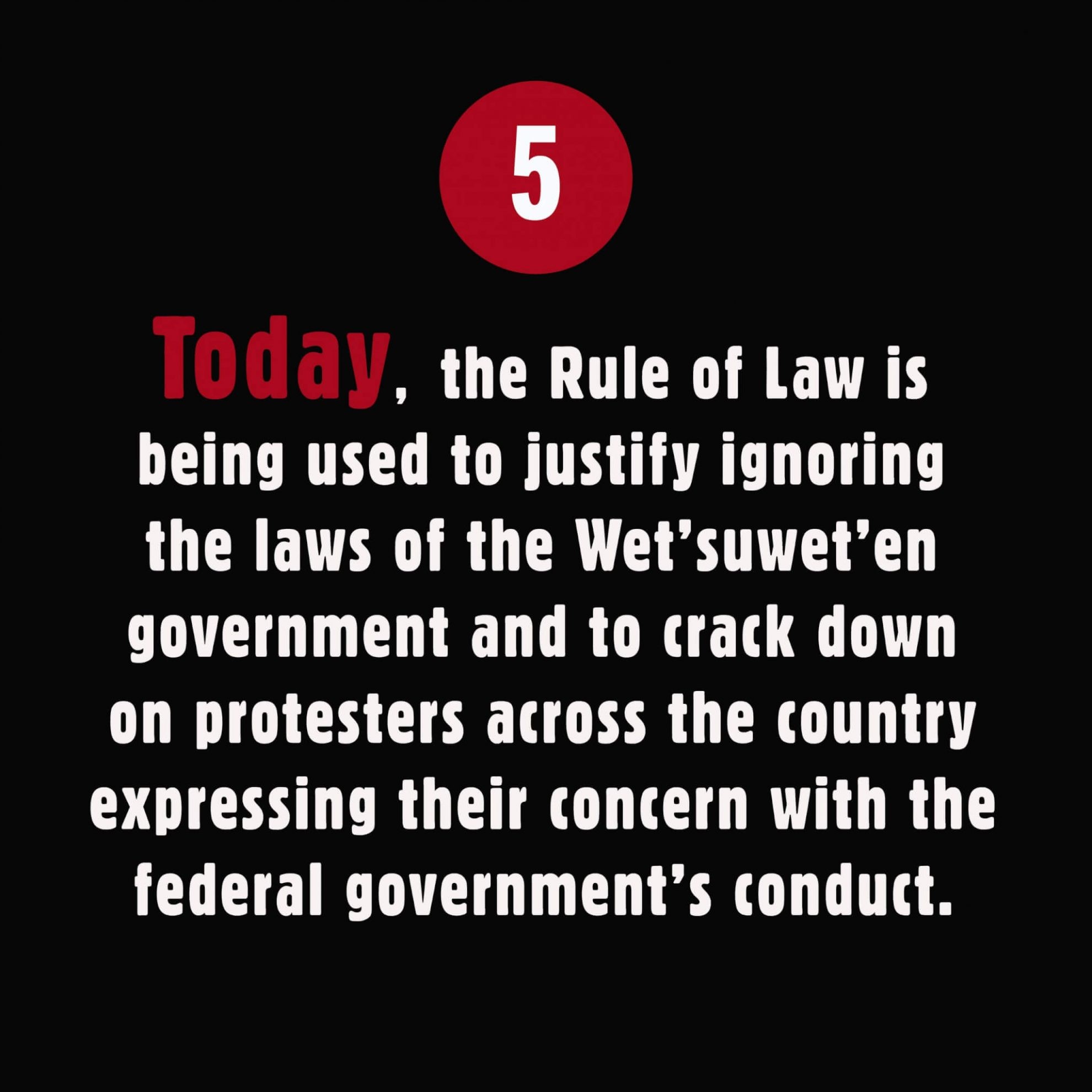 If we look back critically on the application of the “rule of law” it has been used to justify human rights violations and other deplorable acts. Unfortunately, this isn’t relegated to the past. Recently, we have seen the same sentiments applied to the ongoing violation of the Wet’suwet’en hereditary leadership and traditional governance opposing Coastal GasLink’s fracked gas pipeline. Read more about the contentious “rule of law” concept in the graphics below.
