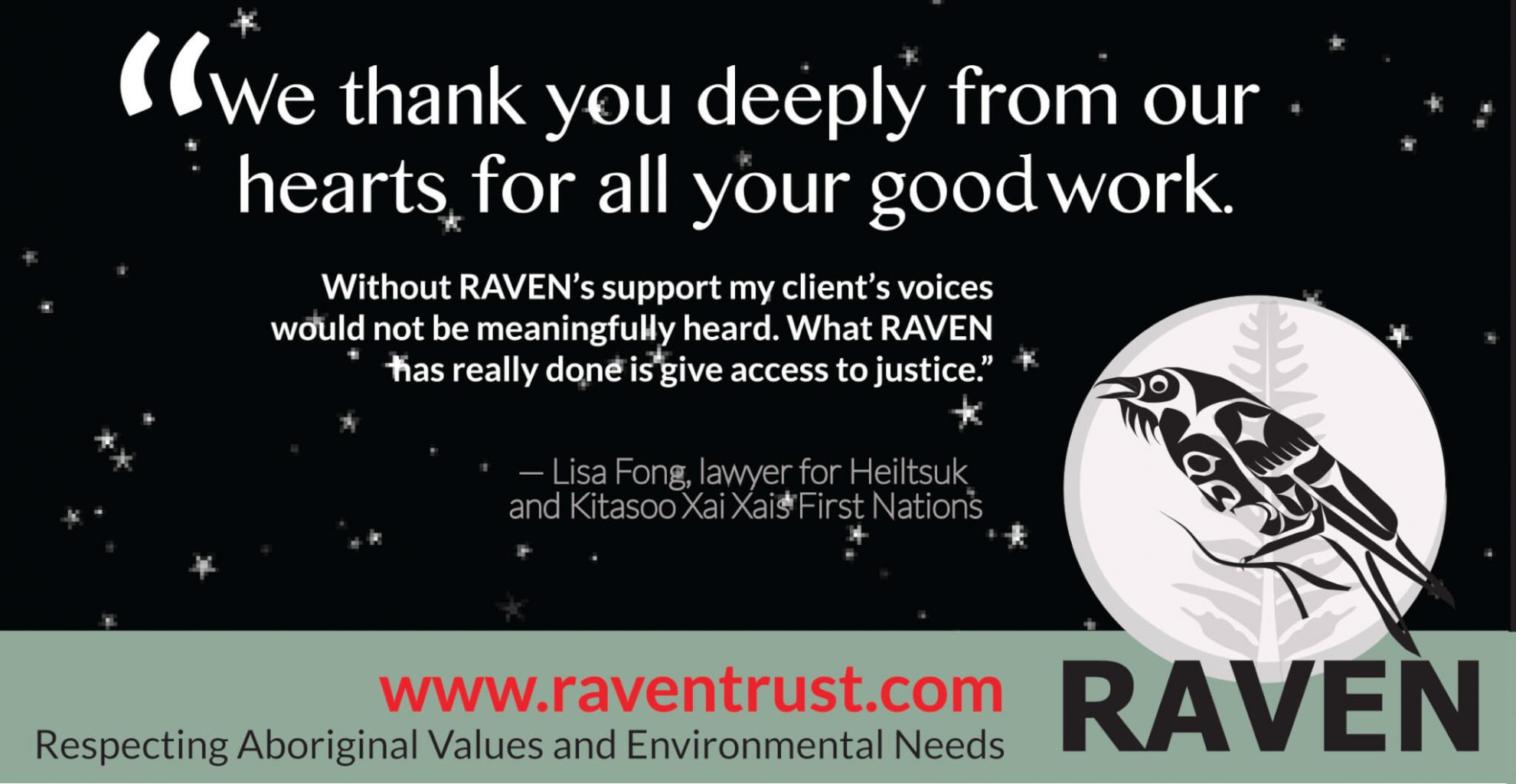 Five Nations joined forces and launched a series of court challenges, confident that with RAVEN at their backs they could fully flex their legal muscles. Together with Sierra Club BC we launched the Pull Together campaign, setting an ambitious goal to raise $250,000. We would not have set our sights so high if we didn’t know what you—our donors and friends—were capable of. We had a hunch — which you loudly affirmed — that Pull Together was just the kind of audacious, groundbreaking campaign that would change the course of history.