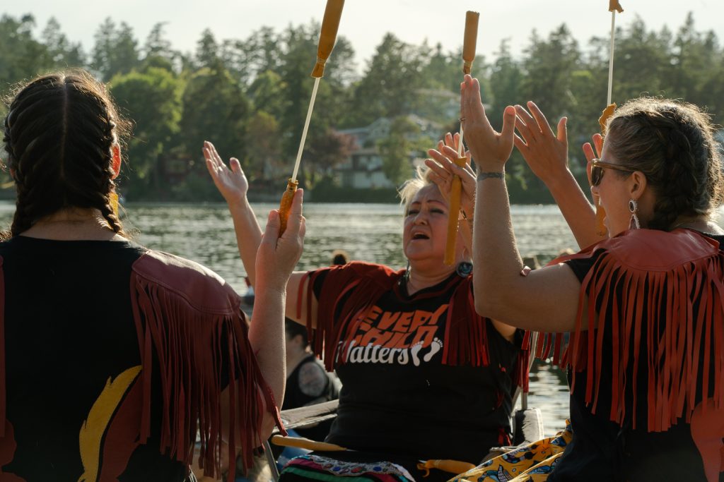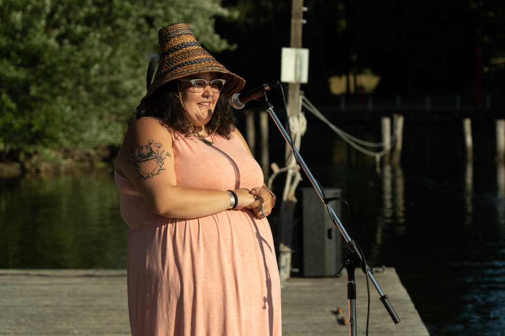 The event was a fundraiser for West Moberly First Nations’ Site C campaign, and raised a whopping $8.2K thanks to the generosity of folks who attended from canoes, kayaks, paddleboards and on-shore, watching and listening from across the water.