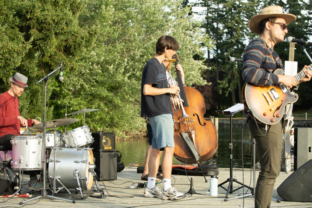 They also invited everyone to share and sing along as a way of thanking the RAVEN community for standing strong on behalf of Indigenous justice-seekers. To top off this golden evening, electric jazz ensemble Wes Carroll Confabulation pealed out a sweet set of tunes, lit by trumpet peals, fantastic guitar licks, and the deep vibrations of stand-up bass & drums.