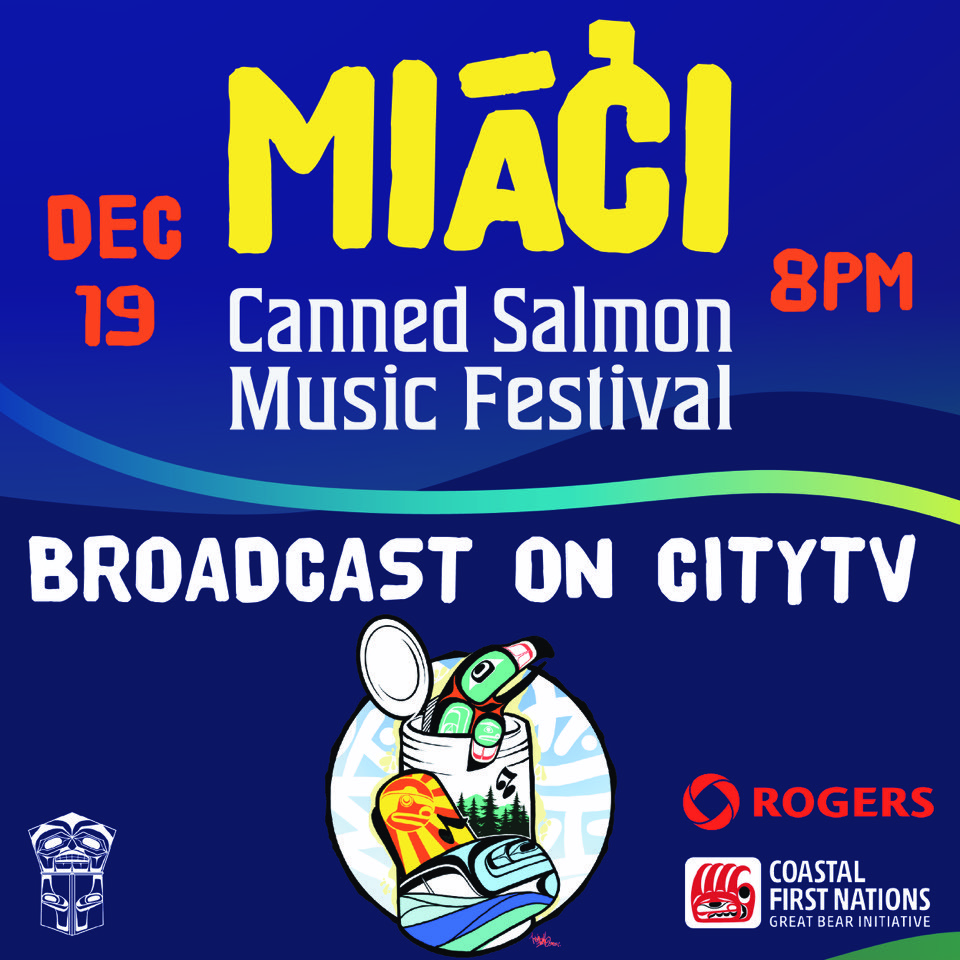 Coastal First Nations, Heiltsuk Nation, RAVEN and Salmon Nation are thrilled to share that CityTV will air Miaci: Canned Salmon Music Festival — featuring Snotty Nose Rez Kids, Carsen Gray, Jason Camp & the Poseurs, comedian Sasha Mark, Hayley Wallis, Murray Porter and more —  on Saturday, December 19!