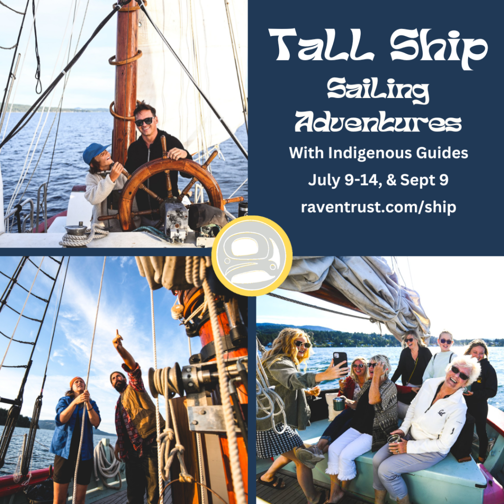 Whether we are Indigenous or settlers, we can take the time to learn from Indigenous Knowledge Keepers about the stories of the lands we live on. That’s why we’re so excited to be bringing passionate and knowledgeable elders and educators aboard the tall ship Providence to lead small group tours, illuminating human connections and the life-worlds of our more-than-human kin on the Salish Sea. Right now, we are offering an early bird rate with $50 off of sailing adventures for our RAVEN inner circle: get your tickets before June 19th to save.