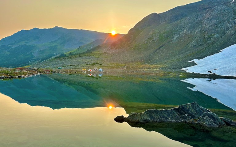 Fly camp with Lindquist Peak in the distance on the Deer Horn property, 120 kilometres south of Smithers, B.C. Courtesy of Tony Fogarassy