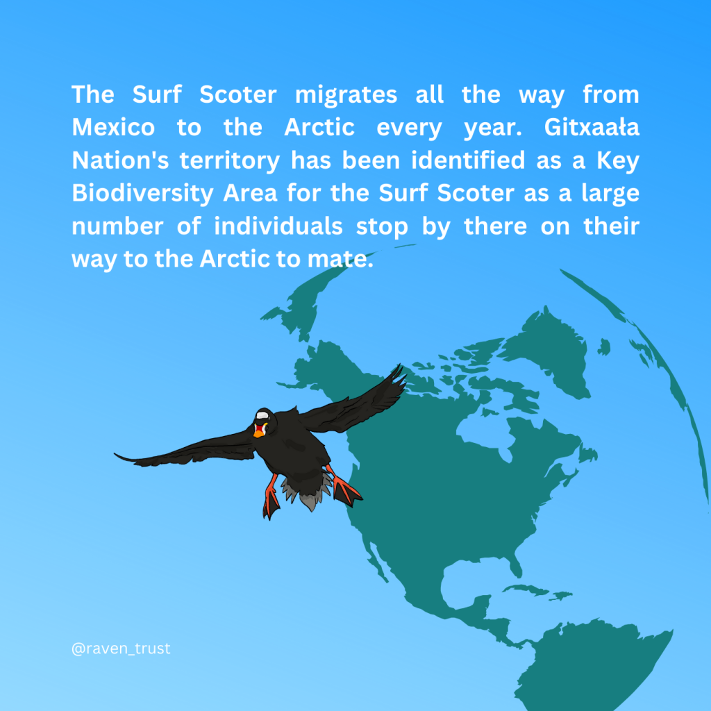 Gitxaała is trying to protect vital ecosystems for present and future generations. We want to take this moment to introduce you to a vital member of Gitxaała’s territory, making parts of the territory a Key Biodiversity Area – the Surf Scoter!
