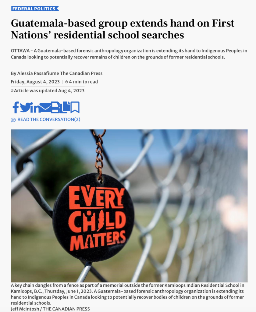 A Guatemala-based forensic anthropology organization is extending its hand to Indigenous Peoples in Canada looking to potentially recover remains of children on the grounds of former residential schools. Read more from Toronto Star here.