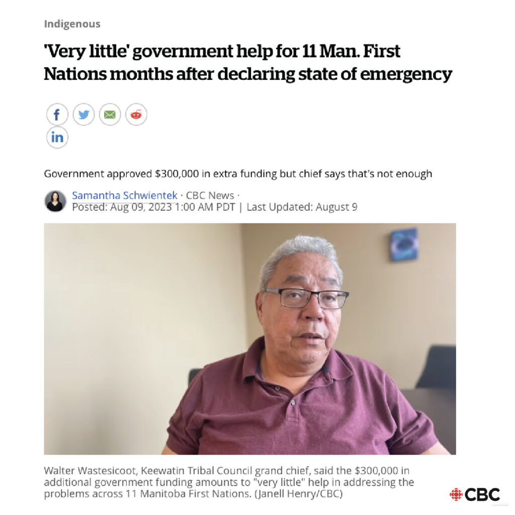 Government approved $300,000 in extra funding but chief says that’s not enough. Read more from CBC Indigenous here.
